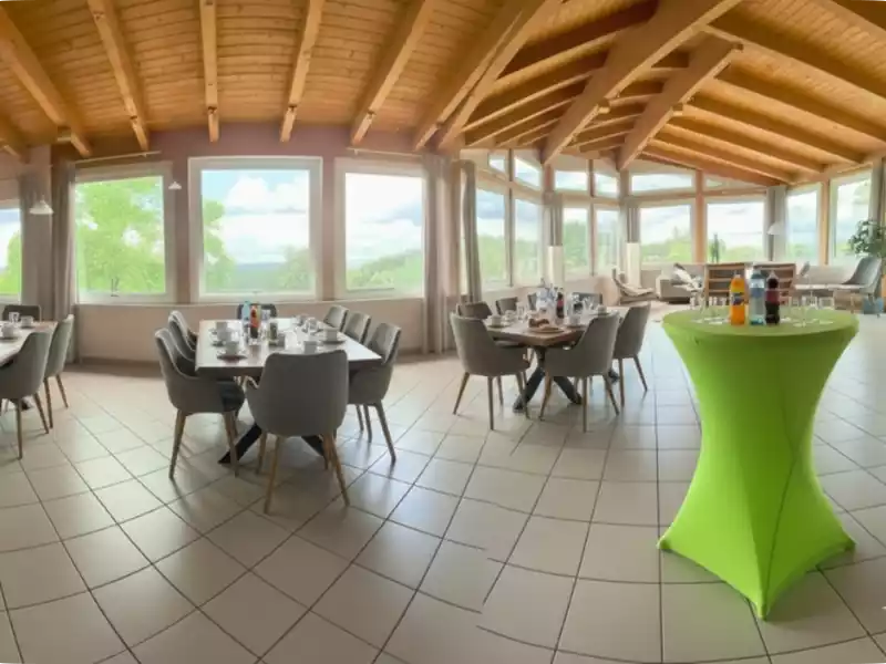 • Lounge met uitzicht: Onze lounge met uitzicht over de Vulkaaneifel is voorzien van alle gemakken om een ontspannen samenzijn te vieren. Uiteraard hebben we ook een ruime keuze aan spellen.